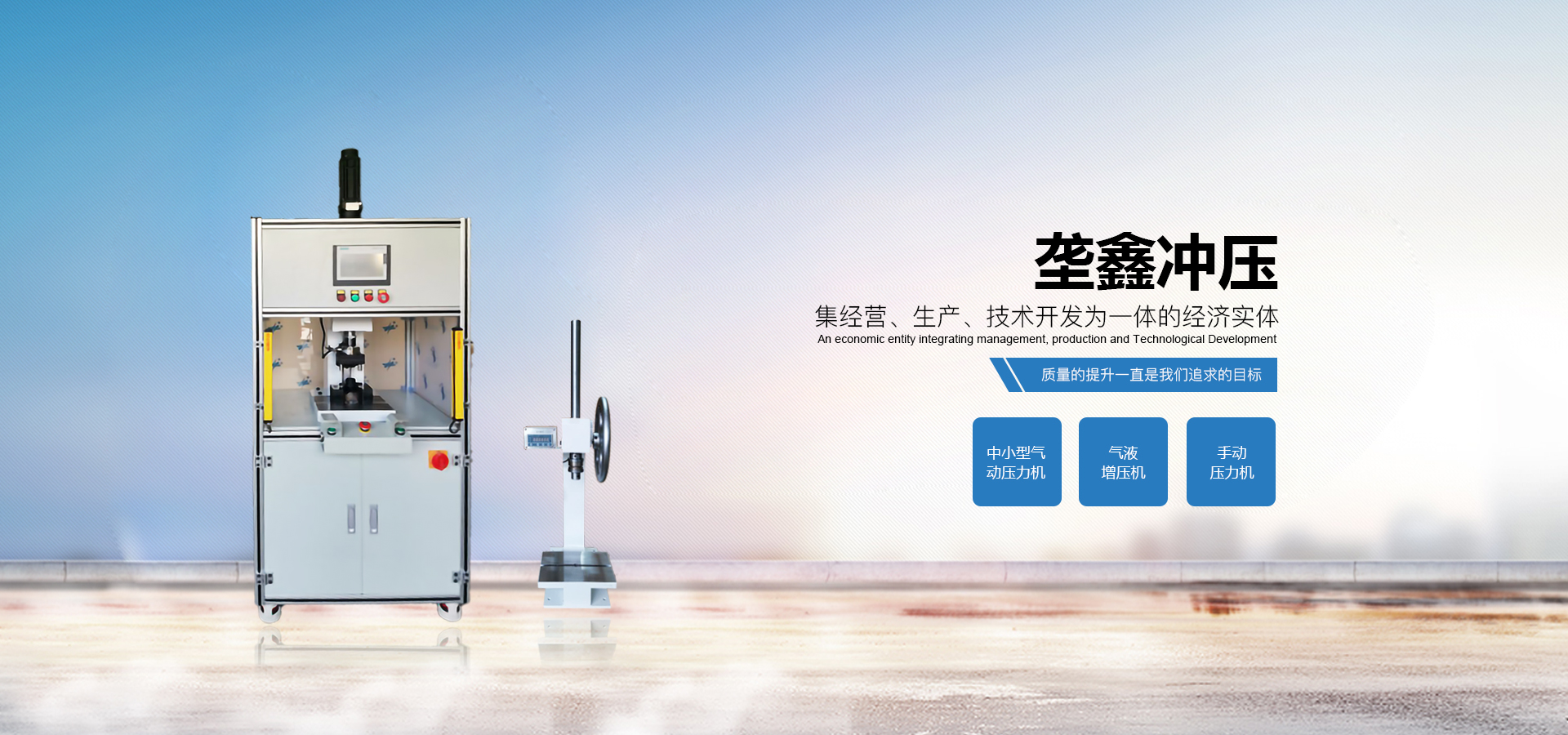 煙臺壟鑫沖壓設備有限公司是集經(jīng)營、生產(chǎn)、技術開發(fā)為一體的經(jīng)濟實體,專業(yè)致力于中小型壓力機、非標壓力機的設計開發(fā)和制造。在引進德國、日本等國家先進的鉚壓控制技術及機器設計理念的基礎上,結合相關行業(yè)的實際需要,開發(fā)出各種臺式、落地式氣動壓力機、手動壓力機、氣液增壓機、氣液增力缸、旋鉚機、無鉚釘鉚接機等鉚接設備。產(chǎn)品應用領域廣泛,適用于汽車零件、電子、電器、家電、包裝、五金、等行業(yè)。公司視質(zhì)量為生命,并一貫遵循對每一臺產(chǎn)品負責,對每一位用戶負責,真誠為您服務。 自公司成立以來,秉承“誠信,創(chuàng)新,專業(yè)”的經(jīng)營理念,以優(yōu)質(zhì)的產(chǎn)品,完善的售后服務,樹立良好的品牌形象,服務于廣大新老顧客。我們竭誠于各位同仁攜手并進,共謀發(fā)展。